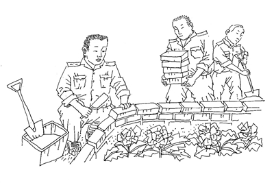 乍一看军人吃苦耐劳,勇猛刚毅,一副粗线条的模样,实则粗中有细。军人也讲究美,也有情趣,庭前种花,美化军营,即是一例。记不得当时谁弄来“步步高”的花籽,首长领着机关人员,在房前空地挖土整地,捡去砖石,施上底肥,播撒花籽,在花圃边用砖块埋上路牙,美观简练的两爿花圃就成了。