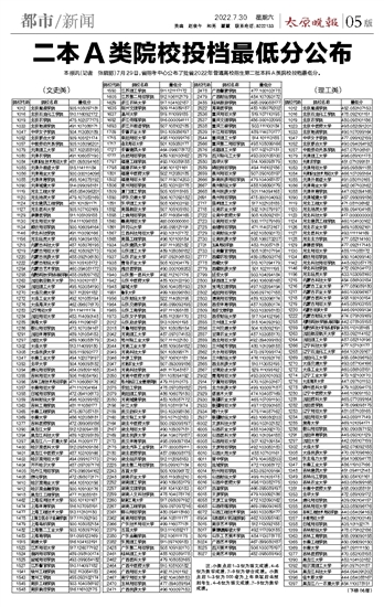 二本A类院校投档最低分公布