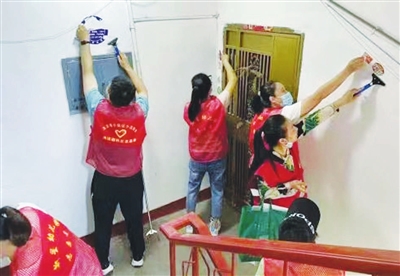 在职党员自带工具,全面清理了辖区114小区的居民楼。大家热情高涨、不怕脏累,认真清理楼道内的小广告,经过2个多小时的地毯式清理,铲除了小广告200余张。