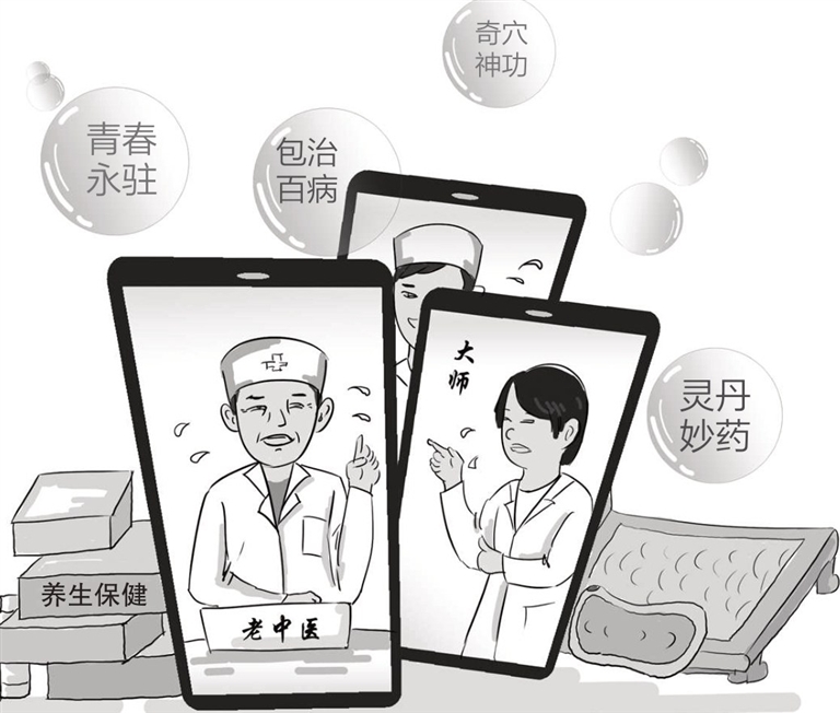 邀请一位医生装扮的主播,打着养生知识科普的旗号,直播中侃侃而谈如何养生,等到直播快结束时,开始推销玉石床、膏药、按摩仪,或祖传的“灵丹妙药”。名为养生知识科普,实为直播带货,收割“智商税”的行为同样比比皆是。这些直播往往利用一些人热爱养生又贪图便宜的弱点,卖力吆喝推销保健用品,使一些不明真相的观众上当受骗。