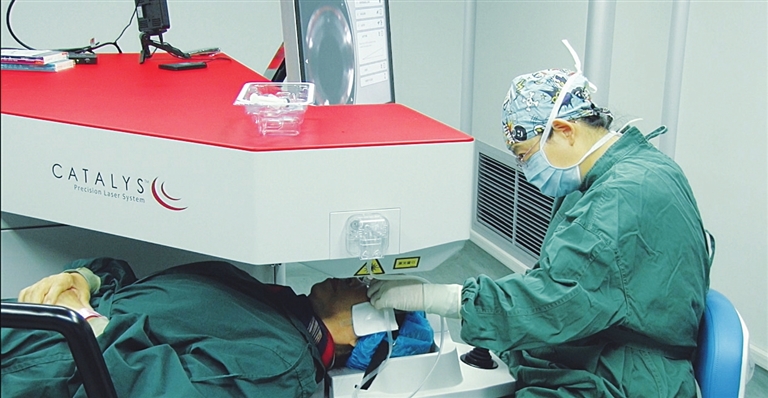 原来,姜女士在年轻时,因患高度近视曾实施过放射状角膜切开术(即屈光矫正手术)。由于当时治疗技术有限,手术后,姜女士的角膜光学区明显变小,如果再实施白内障手术,可能会因加压导致角膜切口裂开,手术风险很高。高岩决定使用强生眼力健“Catalys白力士”飞秒激光手术设备帮助姜女士恢复光明。