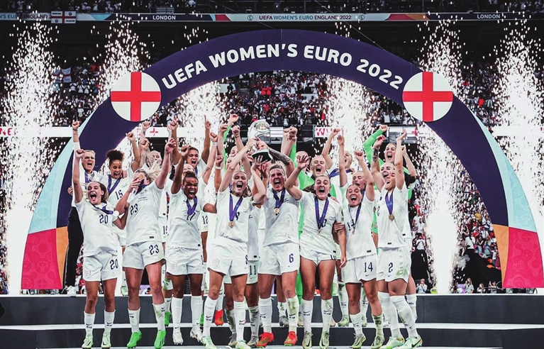 英格兰球迷唱了多年“让足球回家”,但“三狮军团”去年打进欧锦赛决赛功亏一篑。英格兰女足则扛过大旗,没有让举办决赛的伦敦温布利球场再次成为主场球迷的伤心地。
