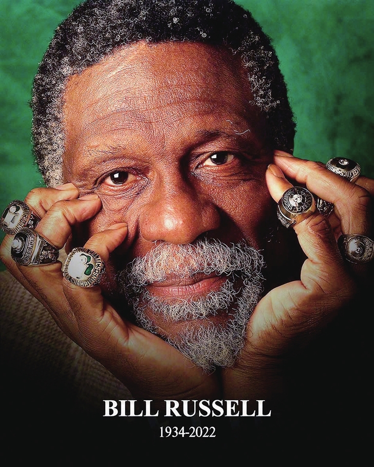 11枚总冠军戒指、5次常规赛MVP、2个NCAA冠军、1枚奥运会金牌,先后入选NBA联盟25大、50大、75大球星,以球员、教练身份两次入选奈史密斯篮球名人堂,NBA总决赛MVP奖杯以他的名字命名……比尔·拉塞尔生前取得了数不清的荣誉,更是以独特的方式改变了篮球这项运动。