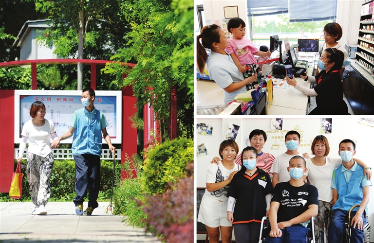 太原孤残儿童特殊教育学校的“爱心妈妈”用满腔热情和爱心,甘当孩子们前行路上的“扶梯”。图为8月2日,小党和“兄弟姐妹”们在“爱心妈妈”的陪伴下走上该校实训基地工作岗位。 牛利敏 摄