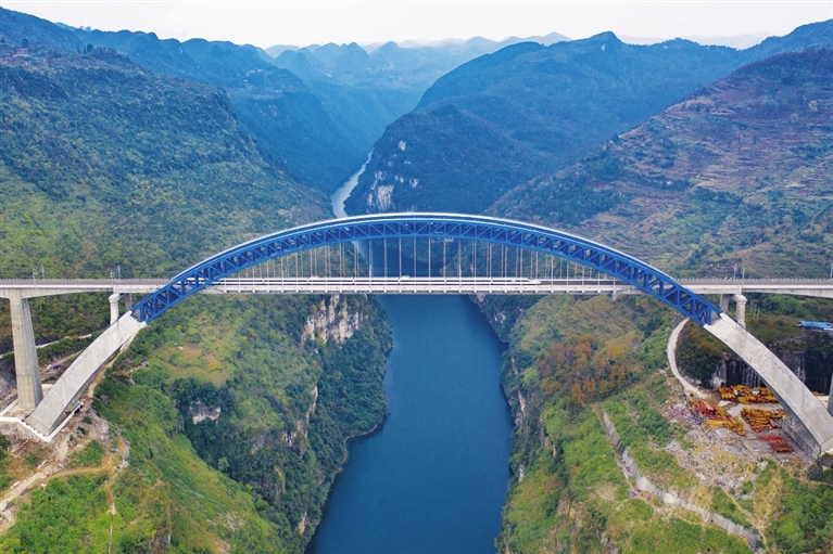 贵州省六盘水市水城区都格镇龙井村村民马选军推开屋门就是3座桥:50年前修的40多米长的木板吊桥、30年前修的仅1米宽的铁板吊桥和2016年通车的世界第一高桥北盘江大桥。“前两座小桥让我们能到河对岸,北盘江大桥真正联通了外面的世界。”马选军说。