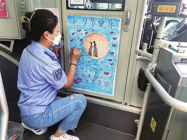 经过几天的准备,8月4日上午,主题为“爱在七夕节”的“告白号”上路运行。车厢内张贴了大量关于七夕节的手绘海报和主题图片,不少乘客上车后很快就被吸引,并仔细浏览,沉浸在了浓浓的节日氛围中。“我第一次乘坐这样的主题宣传车,感觉非常有意义,能让乘客利用碎片时间感受和了解传统节日和文化。”乘客张女士说。
