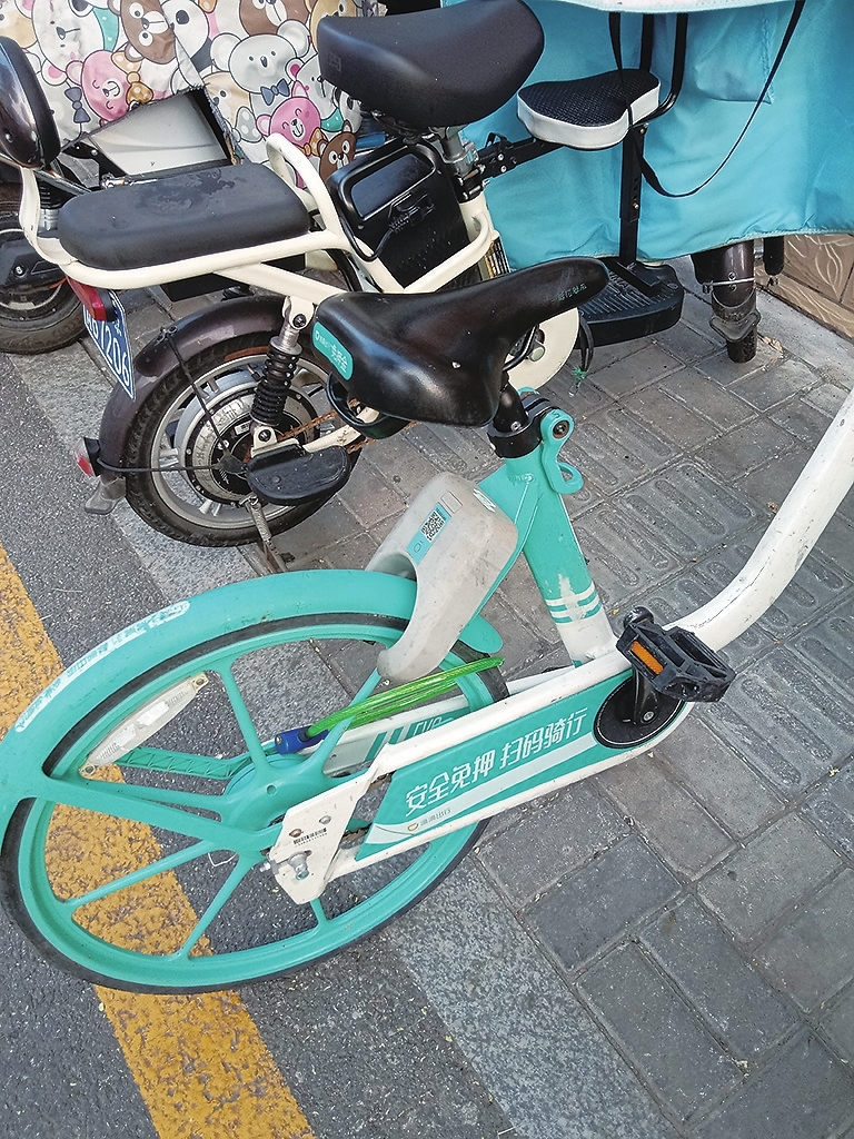 这是读者邢先生8月4日清晨5时30分许在康乐街山西医科大学第一附属医院门口遇到的一辆共享单车,只见该车的车锁未锁,但后轮被加了个圈锁。一辆共享单车成了一辆“私家”自行车。1个小时后,邢先生再过此地,这辆被锁的共享单车还在。邢先生认为,该地段共享单车很多,租用方便,不存在着急租用找不到车的情况。共享单车意在共享,不该私自加锁,独自占用。