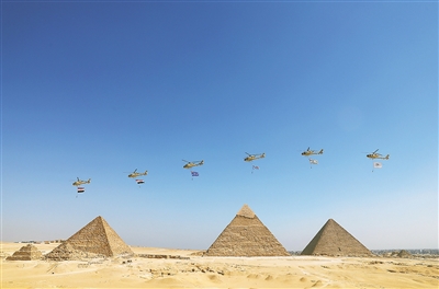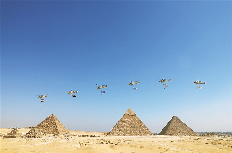 当日,埃及2022金字塔航空表演在吉萨金字塔景区举行,多个飞行表演队伍进行了表演。新华社 发