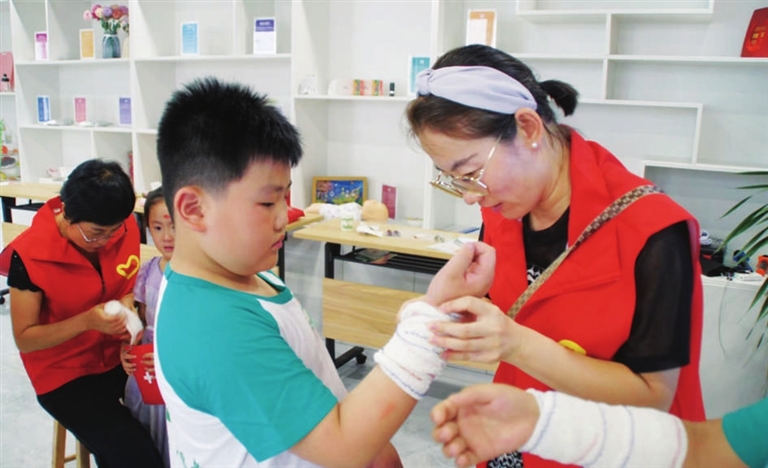 8月6日,长治路社区首届健康主题夏令营——“小小健康志愿者训练营”文化活动落下帷幕。活动为期6天,活动分为健康管理、紧急救助、传统中医药、心灵小导师等项,具体包括心肺复苏、应急处理、防溺水自救等。活动中,在相关老师教授下,孩子们学到了丰富的健康文化和营养知识,树立了健康理念,掌握了急救技能。活动还在每个人心中种下了“志愿服务”的种子,需要时为他人提供帮助。 周利芳 张鹏 摄