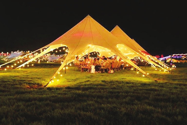 河北涞源以“星空”“云海”等景观为特色,推出系列露营项目;贵阳市天河潭旅游度假区举行荧光跑+露营嘉年华;青岛、厦门等城市举办“潮人露营音乐会”。同时,剧本杀、相亲、研学等也被纳入露营活动内容。