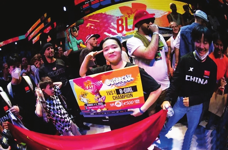 她从9岁开始跳霹雳舞,从业余俱乐部一路跳到了省队,又跳到了国家集训队,跳上了世界大赛冠军的领奖台,达成中国霹雳舞前所未有的新高度。