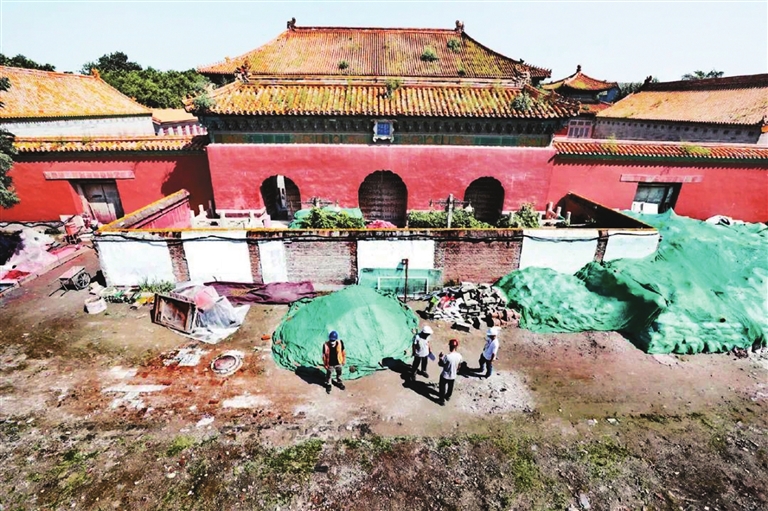 8月10日上午,记者来到位于东城区南池子大街的皇史宬南院。一进门,映入眼帘的是满院子的脚手架,原本私搭乱建的小平房已拆除完毕,院子的全貌一览无余。