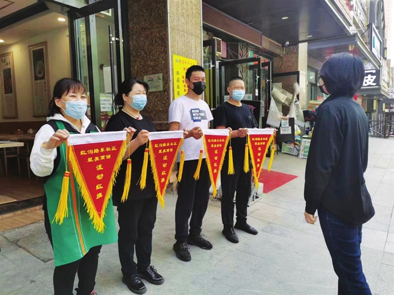 “我们希望通过评选‘最美商铺’,让优质服务、诚信经营的新风尚在商铺之间,甚至在社区中传递。”2022年起,社区采取以优促优的方式来管理辖区商铺,评选“最美商铺”,并悬挂“流动红旗”。