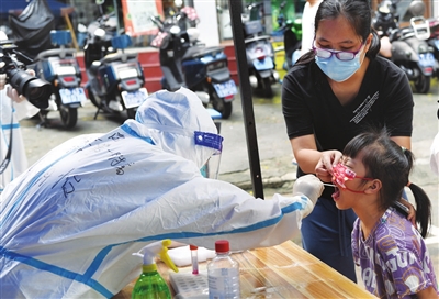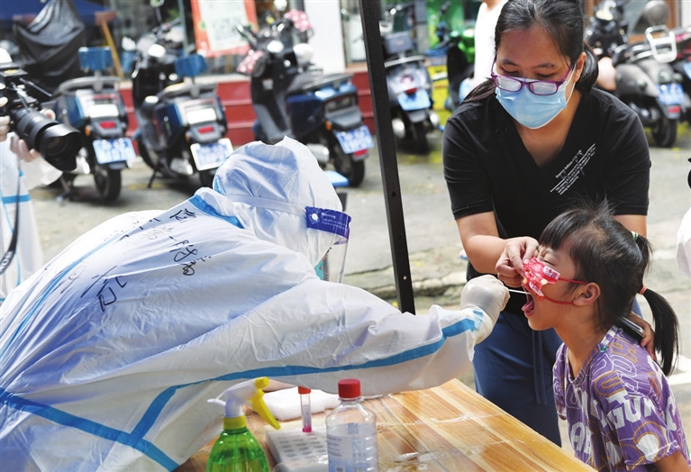 8月11日,在三亚市天涯区南边海渔村,河南省援海南三亚医疗队的医护人员原清怡为居民做核酸检测。