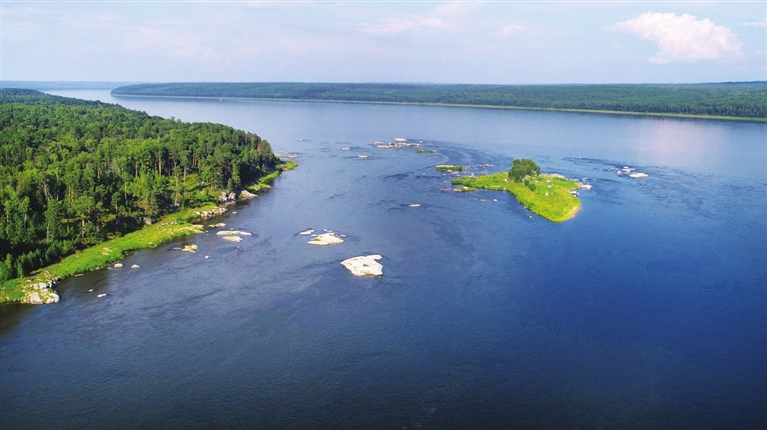 这是8月8日在俄罗斯克拉斯诺亚尔斯克边疆区叶尼塞地区拍摄的一个岛。新华社 发