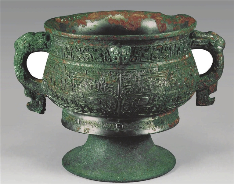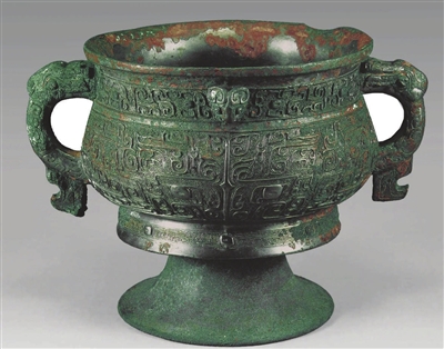 展厅中一件铜簋,就是三千年前一场射箭比赛的“奖杯”——柞伯铜簋。簋内有74个铭文,记载了公元前10世纪的一场射礼活动。周王在镐京举行射箭技艺比赛,选手分两个小组,用十块红铜作为奖品。周王在比赛开始前颁布指令,要求参赛者谨慎谦恭地比赛,射中靶子最多的人可以得到奖品。比赛中,柞伯十发十中,获得奖赏。柞伯就用这十个红铜饼制作了这件簋,以兹纪念。此件簋形似也酷像如今的奖杯。