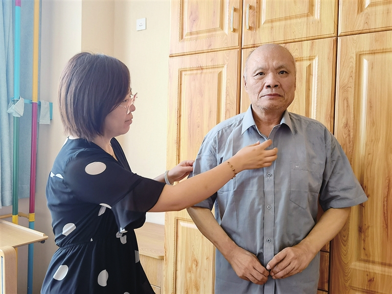 在这里,他得到护工的精心照料。因为视力欠佳,护工将一日三餐送入房间,还帮他洗衣服,照顾生活起居。几个月前,完成白内障手术后,老人出现一些术后反应,仍然是护工毫无怨言地照料着他。