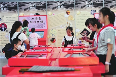 8月13日,孩子们在山西省科技馆里参观游学。暑假期间,科技馆不仅常设科普展厅正常开放,还适当增加各项活动的频次和时长,为观众营造丰富的科普体验。 李学军 宋卫东 摄