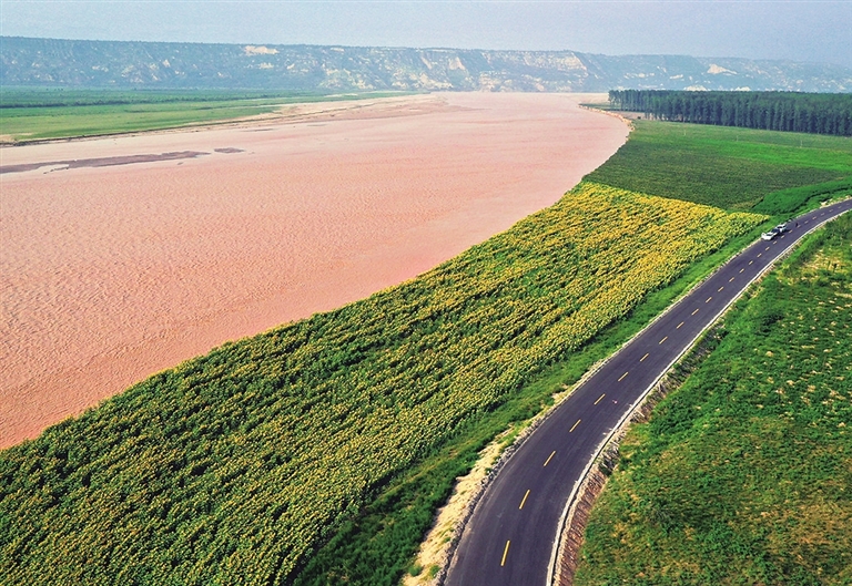 “绿飘带”沿黄河蜿蜒