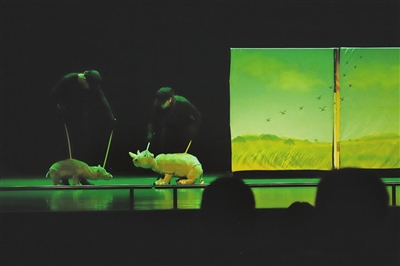 8月14日,原创绘本剧《苏丹的犀角》在山西大剧院小剧场首演。该剧通过讲述保护白犀牛的故事,让观众意识到保护濒危动物的重要性。 张昊宇 摄