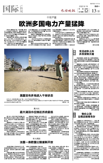 欧洲多国电力产量猛降