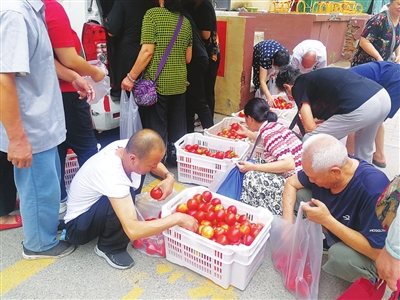 “这一大袋子才10元,比在超市便宜一半!”“秋天来了,我家每年都要腌西红柿酱,为冬天做准备。前两天我还正和老伴说该买西红柿腌酱了,咱社区就给联系好了!”大妈们你一言、我一语,对物美价廉的西红柿赞不绝口。