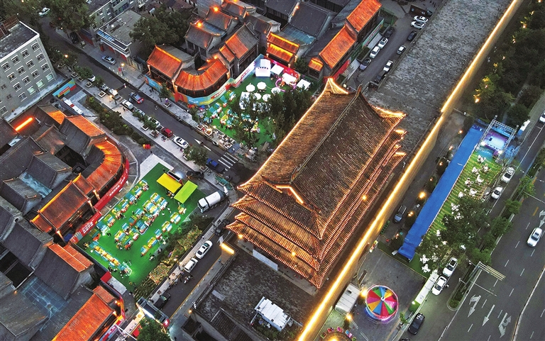 8月21日,夜幕下的拱极门,在“文道好市”的围绕下,更显得古韵悠长。“文道好市”是我市有关部门助推“夜经济”快速发展,释放消费新动能,丰富市民食、游、购、娱的新举措。 贾鹏 摄