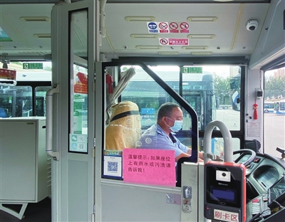 近段时间,我市频繁降雨,有的乘客会将湿漉漉的雨伞放在座位上或将车窗打开,导致座位上有积水或污渍,影响其他乘客就坐。有一次晚高峰,车厢内乘客比较多,但有两个座位一直没人坐。公交车进站停靠后,梁永立走到车厢查看情况,原来这两个座位上有水渍,他赶紧找来一块干净的抹布将座位擦拭干净。