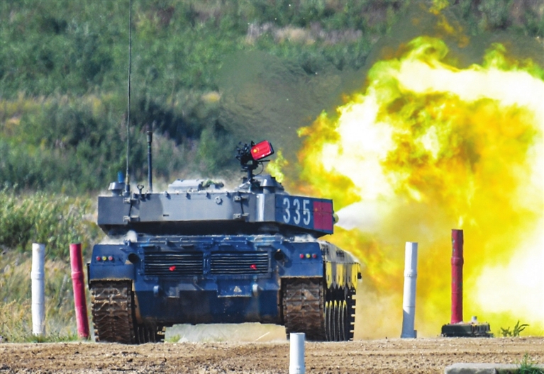 在当天比赛中,编号335的中国参赛队96B坦克车组与同组的俄罗斯、吉尔吉斯斯坦和白俄罗斯车组展开比拼,最终获得单车赛第三组第三场比赛第三名。