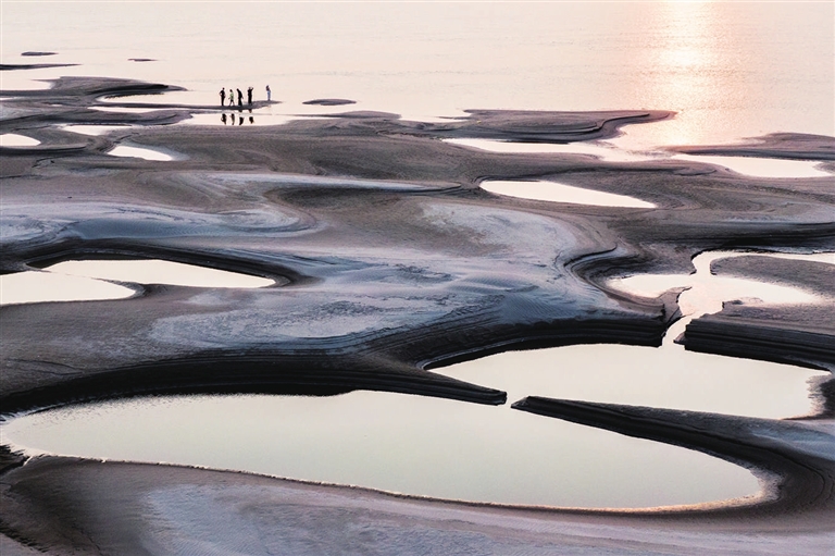 8月25日拍摄的天兴洲露出的滩涂(无人机照片)。