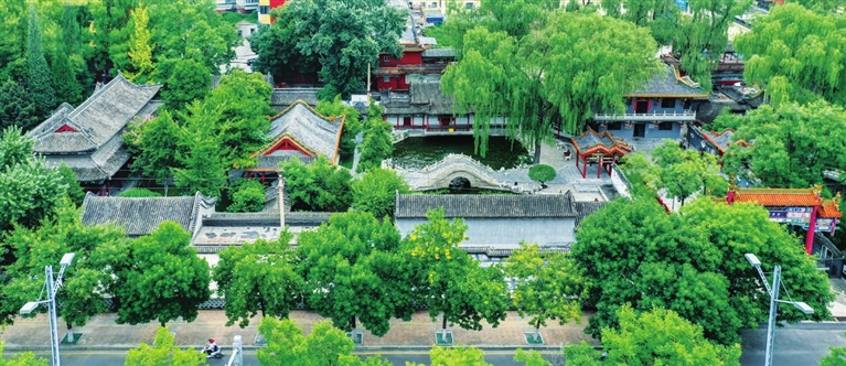 登上公园最高处的四角双亭,俯瞰树木葱茏中的碑林,回望墙外滨河东路的人行天桥,一静一动,古今交错,不由得神清气爽、心旷神怡…… 记者 辛欣