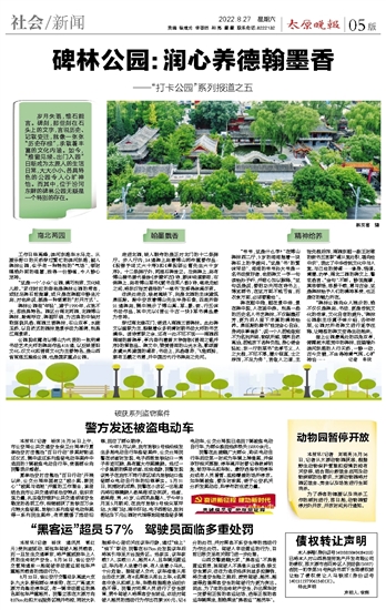 “这是一个‘小众’公园,精巧别致,文化味儿浓。”家住附近的陈刚是碑林公园的常客,或驻足碑石前揣摩,或只是在碑廊中静坐片刻,对他来说,都是一种惬意的“打开方式”。