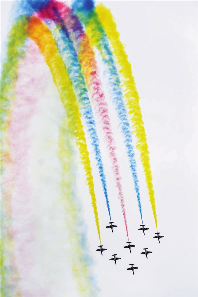 首先进行飞行表演的是空军航空大学“红鹰”飞行表演队。在为期5天航空开放活动中,“红鹰”飞行表演队将呈现20套表演动作,其中一箭穿心、八机斤斗,是他们的招牌动作。“八一”飞行表演队6架歼-10飞机呈现了单机大仰角跃升,六机编队斤斗、六机同步横滚等动作,不仅精彩震撼,同时也具备很高的实战价值。