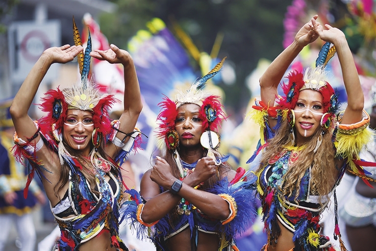 8月29日,表演者在英国伦敦参加诺丁山狂欢节。