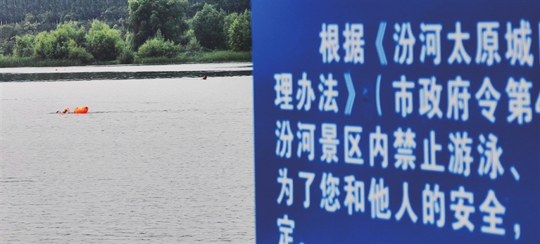 9月2日,汾河景区内有市民不顾景区规定和提醒依旧野泳。希望汾河景区消除隐患,制止不文明行为。 徐浩轩 摄