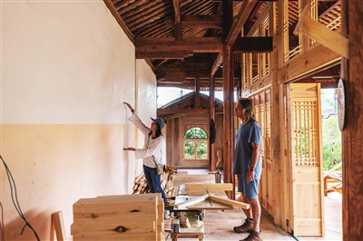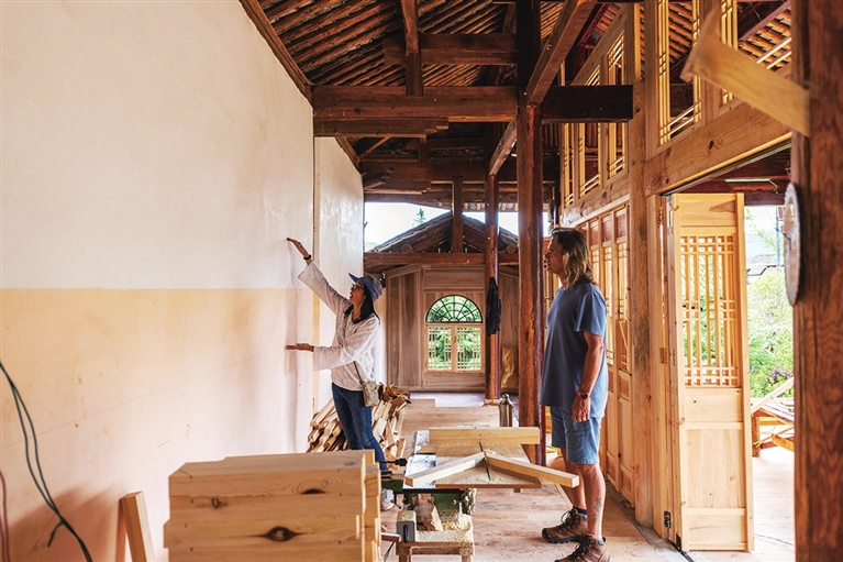 2020年,林登夫妇又把目光对准了100公里外的传统白族村落——沙溪镇石龙村。为了融入村落,林登决定用村民建房的夯土材料来建设酒店,还在石龙村中心广场附近新建了乡村图书馆和夯土体验馆,并将原有的村史馆翻修一新。他希望入住喜林苑沙溪店的客人能真正走入村庄,更好地体验当地的白族文化。