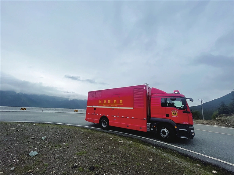 9月5日,救援车辆行驶在四川省甘孜州通往泸定县磨西镇的路上。 新华社 发