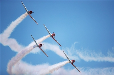 这是9月4日在南非约翰内斯堡拍摄的兰德航展上的飞行表演。