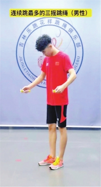 连续三摇跳绳,顾名思义就是“摇三下,跳一下”,比拼的是耐力,坚持连跳次数最多者获胜。据吉尼斯纪录官方微信介绍,对马家俊的吉尼斯成绩的复审并不是易事。他的三摇跳绳速度快,并且连续跳跃近8分钟,必须凭借高清高速镜头,仔细反复检查,以确保动作规范,成绩有效。