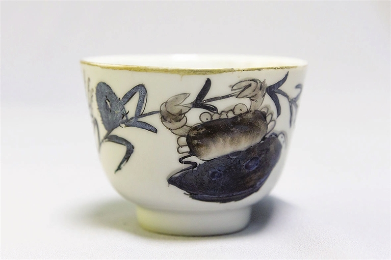 与“洋气”的绿釉杯相比,一旁的清同治景德镇窑粉彩“二甲传胪图”杯显得格外古色古香。这件粉彩杯,杯身描绘着两只螃蟹张开蟹钳夹着芦苇行走。专家解读称,两只螃蟹,寓意“二甲”;芦苇则谐音“胪”。在清代,科举考试中的“二甲第一名”也就是殿试第四名被称为“传胪”,寄托着当时人们对“金榜题名”的殷切祈愿。