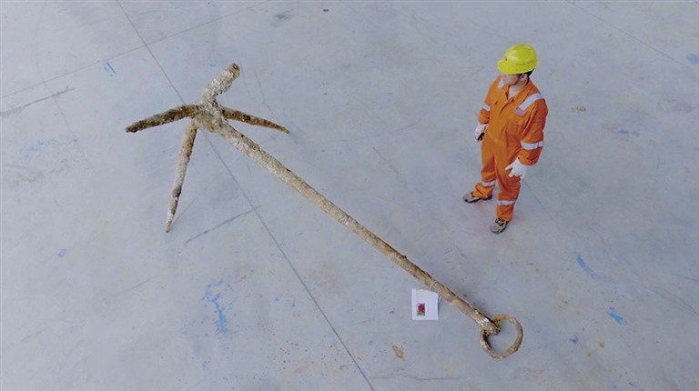 今年3月2日,国家文物局和上海市政府联合宣布正式启动长江口二号古船考古与文物保护项目,已明确长江口二号古船是一艘清同治年间的贸易商船,也是我国水下考古发现的体量最大、保存最为完整、船载文物数量巨大的木质帆船。近期,水下考古工作者在古船北边同时发现了船舵和铁锚,从另一个侧面为长江口二号古船的“体量最大、保存最为完整”提供参考数据。
