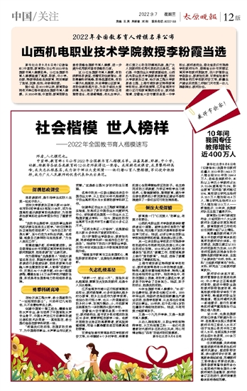 山西机电职业技术学院教授李粉霞当选