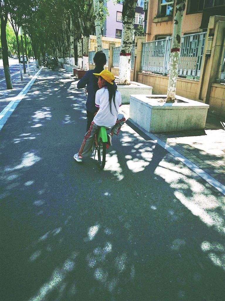 这是9月7日下午在金刚堰路拍到的,一位妈妈骑着公共自行车,后车轮挡板上坐着孩子,既不文明也不安全。 司勇 摄