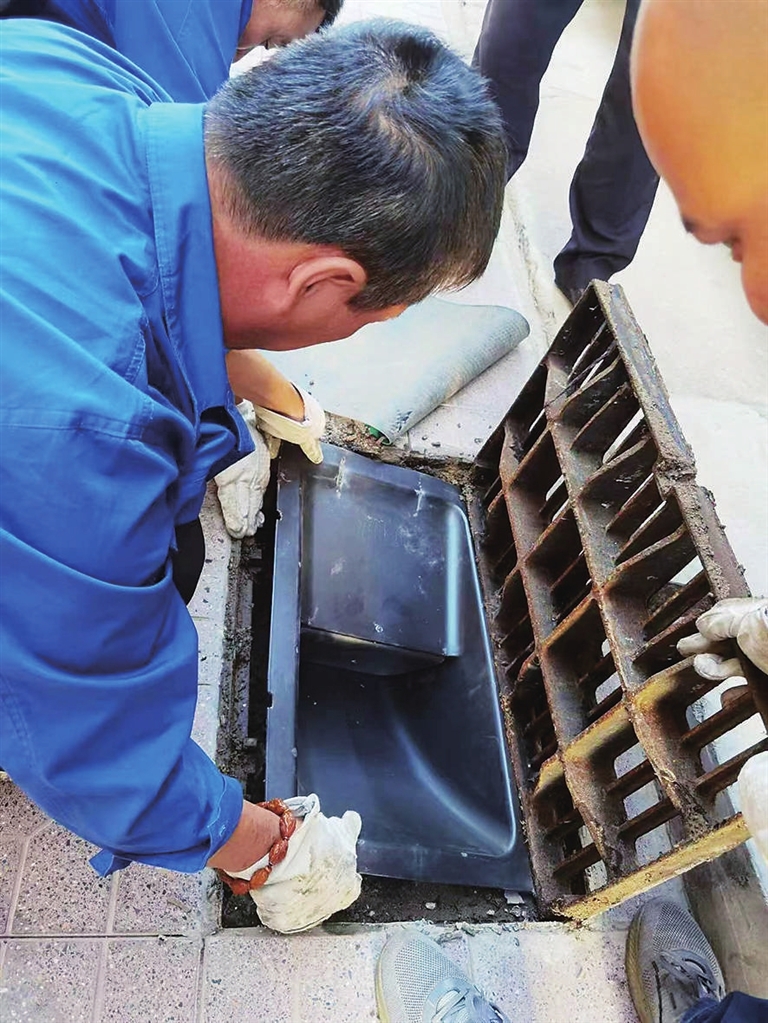 9月13日,记者跟随太原市市政公共设施建设管理中心道路排水保障一所的市政工人在桃园二巷看到,防臭罩放置在井盖下方,黑色塑料材质,将整个井具下方密封严实,防臭罩底部有一个可以打开的阀门,当污水或雨水积累到一定程度,阀门就会打开,不影响排水功能。“这种防臭罩因为采用了新型塑料,还有一定的抗腐蚀作用。”该所水道工段的副工段长赵虎威进一步介绍说,桃园二巷是商业区,小吃店较多,有时个别商户会向进水井内倾倒污水,不仅影响排水效果,气温较高时,还会散发出阵阵恶臭,影响了道路沿线的市容环境。