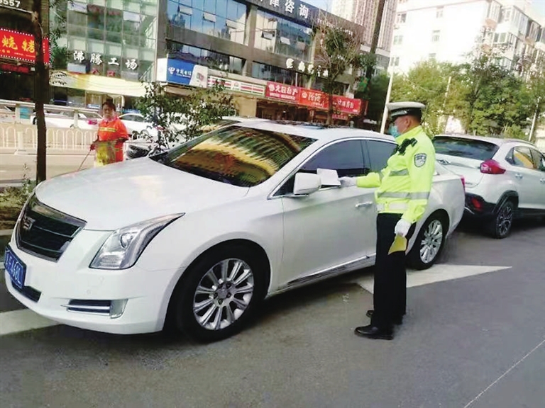 “我中队将于9月15日起,对此路段违法停车进行处罚……”为确保东中环汇通街两侧和下穿通道路段的畅通,保障周边居民出行安全,9月12日至9月14日,交警小店二大队四中队民警和龙堡社区工作人员,给当地违停车辆张贴了提示告知单,并提醒附近居民把车停到周边停车场,严禁乱停乱放。 刘友旺 刘海君 摄
