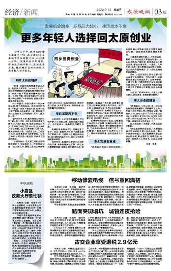 更多年轻人选择回太原创业