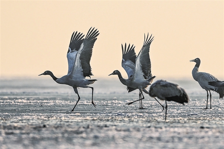 从“人鹤争地”到“人鹤共生”的变化,近年来在黑颈鹤种群的越冬地、繁衍地成为普遍场景。