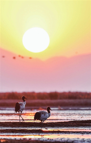 碧水蓝天,万鸟欢歌。“减少人类干扰,改善湿地生态,是对黑颈鹤等各种鸟类的最好保护。”青海湖国家级自然保护区管理局局长何玉邦说,从景区到湿地,从开发到保护,如今每年都有上百只黑颈鹤来鸟岛及周边湿地繁衍栖息。