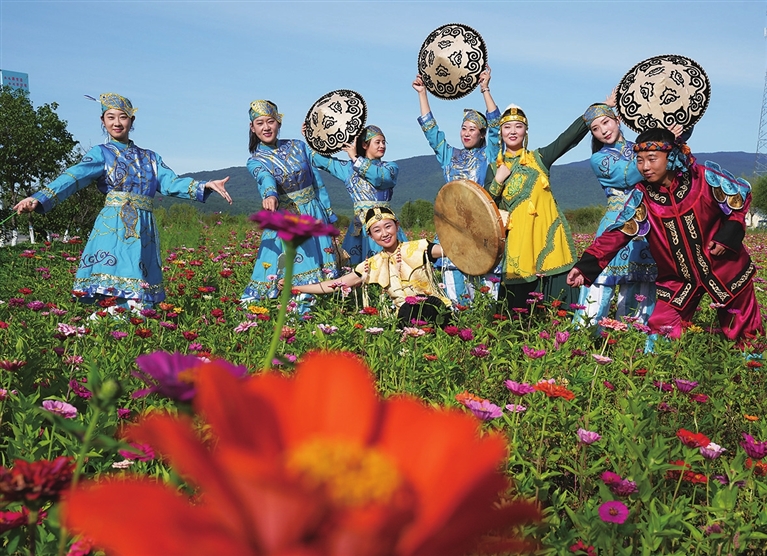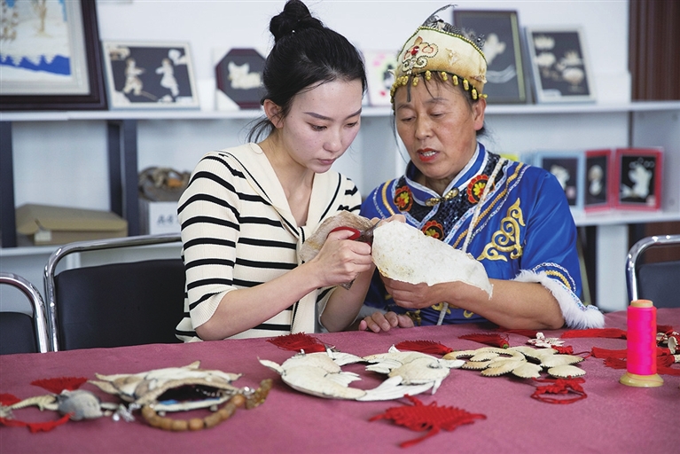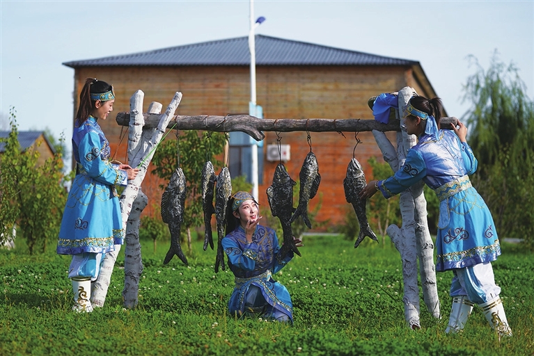 在进行文化展示的同时,尚美含会教当地孩子赫哲族歌舞;她也会与当地的鱼皮制作技艺传承人一起研究手工艺品制作。“我们赫哲族没有文字,文化的传承靠手手相教、口口相传。”尚美含说,“我的梦想就是为我们本民族的文化传承献出我小小的力量。”