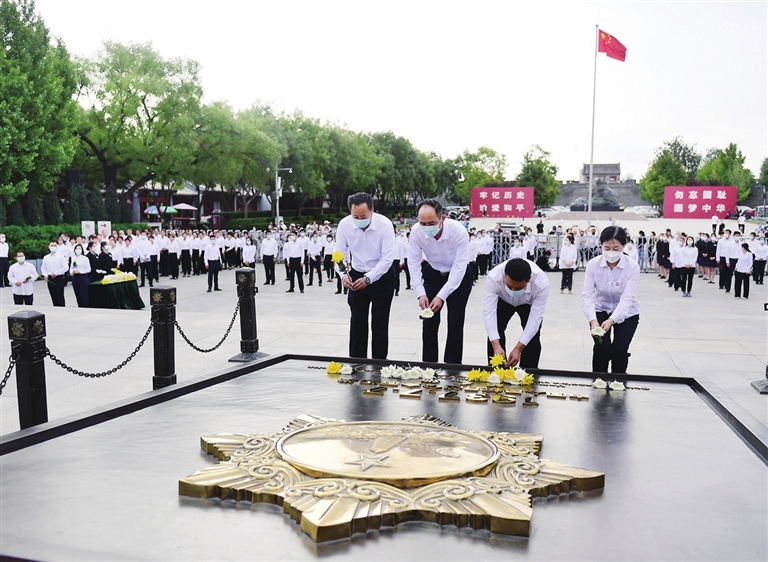 活动在激昂的《义勇军进行曲》中拉开序幕,全场高唱中华人民共和国国歌,随后为在中国人民抗日战争中英勇牺牲的烈士默哀。